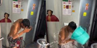 रील के चक्कर में ट्रेन के कोच में बाल्टी में पानी...