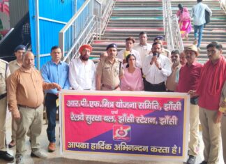 आरपीएफ व मित्र योजना समिति ने झांसी स्टेशन पर यात्रियों को किया जागरूक