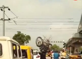 रील के चक्कर में कन्धे पर बाइक उठाकर रेलवे क्रॉसिंग पार करने वाले पर मुकदमा