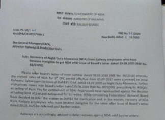 रेलवे में रात्रि ड्यूटी भत्ते की रिकवरी के आदेश स्थगित