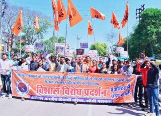 #Jhansi तृणमूल कांग्रेस नेताओं के विरुद्ध अभाविप द्वारा धरना प्रदर्शन