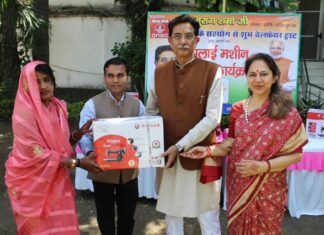 #Jhsnsi सांसद अनुराग शर्मा द्वारा असहाय व गरीब महिलाओं को सिलाई मशीन का वितरण