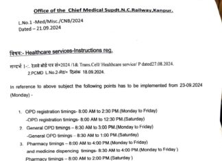 झांसी। रेलवे बोर्ड द्वारा रेलवे अस्पतालों व समस्त स्वास्थ्य इकाईयों में स्वास्थ्य सेवाएं और चुस्त-दुरुस्त करने...