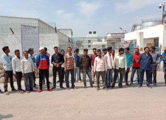 तनख्वाह न मिलने पर साबुन फैक्ट्री के मजदूरों द्वारा प्रदर्शन