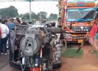 कार और बाइक भिड़ंत में पिता, बेटी और सास की मौत