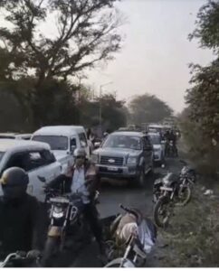 झांसी। झाड़ियों से अचानक सड़क पर निकल कर रेग रहे लगभग 16 फीट लंबा अजगर को देख कर अफरातफरी मच गई। लोग सड़क पर ही अपने वाहनों को खड़ा करके अजगर को देखने पहुंचे। इससे लगभग तीन किलोमीटर लम्बा जैम लग गया। सूचना मिलते ही मौके पर पहुंची पुलिस ने वन विभाग की टीम के साथ मिलकर अजगर को जंगल में छोड़ा। तब लगभग दो घंटे बाद यातायात सुचारू हो सका।