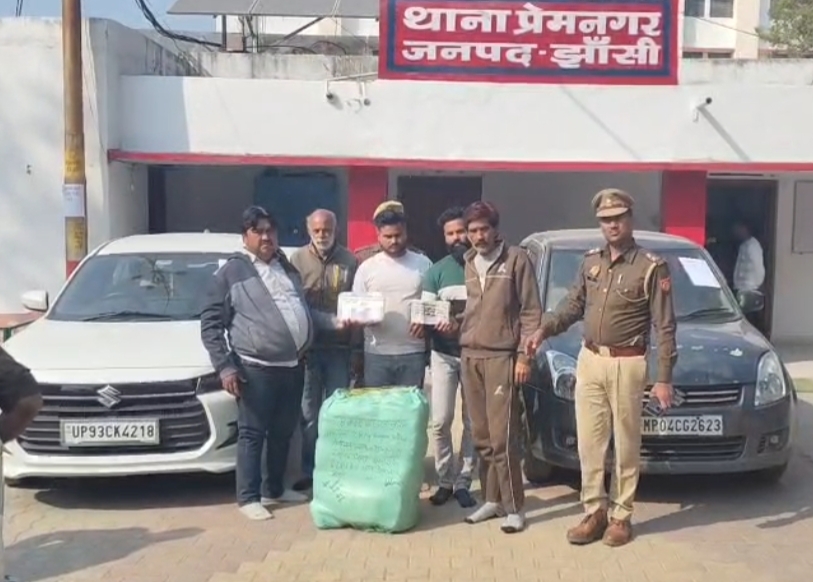 चैकिंग/तलाशी में कार से 28 किलो गाँजे की खेप छिपा कर रखी मिली। कार में सवार मप्र के जिला दतिया के थाना कोतवाली स्थित सिविल लाइन निवासी अखिलेश कुमार दुबे, ओरछा के विमलनगर निवासी देवेश विश्वकर्मा, झांसी के नैनागढ़ स्थित शंकरजी के मन्दिर के पास निवासी देवेन्द्र सिंह, गरियागाँव निवासी सुरेन्द्र सिंह राजपूत व नैनागढ़ निवासी मुरारी साहू को गिरफ्तार कर लिया।
