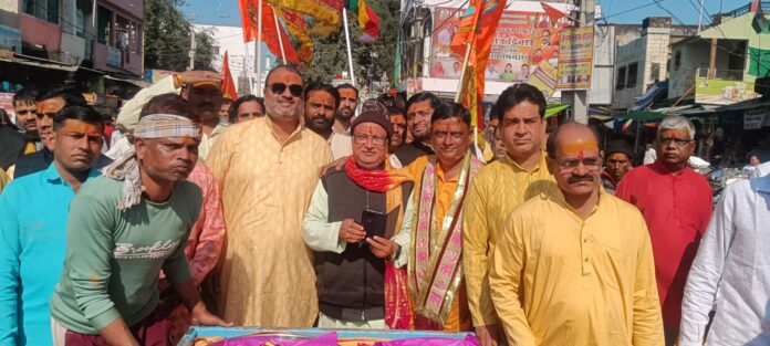 झांसी/बबीना। श्री राम लला मंदिर अयोध्या जी के 2 वर्ष पूर्ण होने के शुभ मुहूर्त में श्रद्धालु जन पवन साहू, मोंटी साहू, मयंक साहू द्वारा अपने पिता स्वर्गीय श्री हरदयाल साहू MES वालों की यादगार में ढाई किलो चांदी के वर्क के कपाट ( जिनकी वर्तमान कीमत आठ लाख लगभग है) श्री राम जानकी मंदिर के गर्भ ग्रह के द्वार पर अर्पित किए गए। 22 जनवरी को रामलला मंदिर के द्वितीय वर्ष पूर्ण होने के पावन पुनीत अवसर पर के शुभ मुहूर्त है।