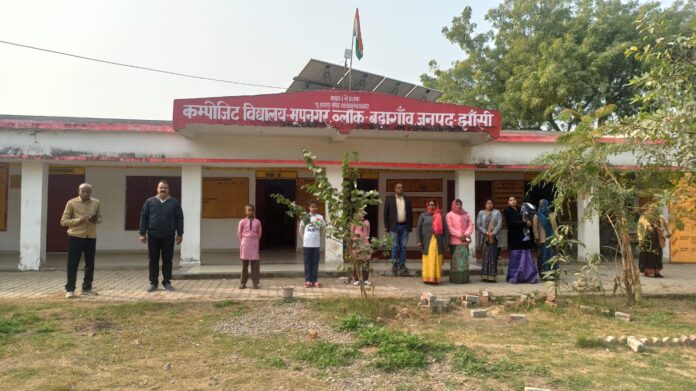 झांसी। गणतंत्र दिवस पर जहां पूरा देश देशभक्ति के तरानों में डूबा था। वहीं जनपद झांसी के बड़ागांव ब्लॉक भूप नगर में स्थित कंपोजिट विद्यालय में 26 जनवरी को गणतंत्र दिवस बड़े ही धूमधाम हर्षोल्लास के साथ मनाया गया। विद्यालय के प्रधानाध्यापक वंदना श्रीवास्तव के नेतृत्व में विद्यालय परिसर में सभी शिक्षक, शिक्षिकाओं सहित छात्र छात्राओं की उपस्थिति में तिरंगा फहराया गया। राष्ट्रगान के साथ स्वतंत्रता संग्राम सेनानियों के बलिदान को याद करते हुए उन्हें नमन किया।