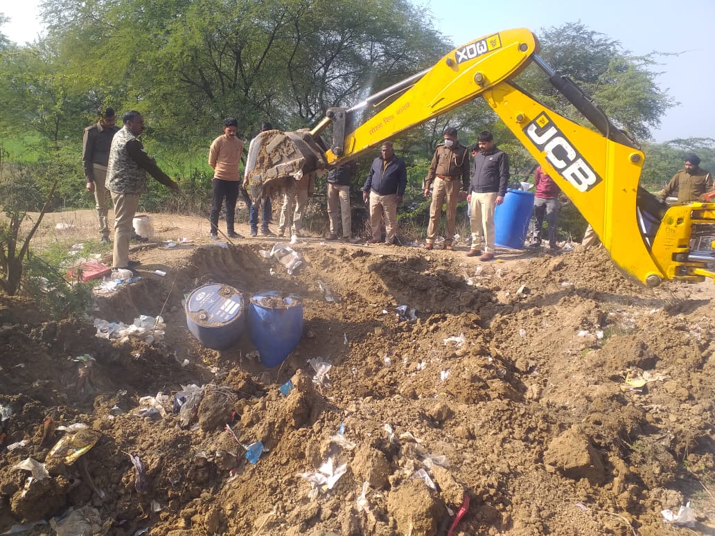 झांसी। जनपद में अवैध शराब के विरूद्ध चलाये गये अभियान के तहत गुरुवार को जिलाधिकारी झांसी आंद्रा वामसी व उप आबकारी आयुक्त, झांसी प्रभार, झाँसी एसके राय के निर्देशन में आबकारी निरीक्षक क्षेत्र-3 रोशन लाल, आबकारी निरीक्षक एस.एस.एफ.ए झांसी अमित कुमार, प्रशासनिक अधिकारी व पुलिस की संयुक्त टीम द्वारा डेरा इटायल थाना लहचूरा में दबिश दी गई। दबिश के दौरान उक्त डेरे पर ईट व सीमेंट से बनी टंकियों में भरे 5000 किग्रा लहन को मौके पर नष्ट किया गया तथा 565 लीटर कच्ची शराब के साथ 02 अभियुक्ताओ को गिरफ्तार कर थाना लहचूरा में आबकारी अधिनियम की सुसंगत धाराओं के अंतर्गत 02 अभियोग पंजीकृत कराये गये। डेेरा पर सीमेंट से बनी भूमिगत टंकियों व भट्टियोो को नष्ट कर दिया गया। यह अभियान लगातार जारी है।