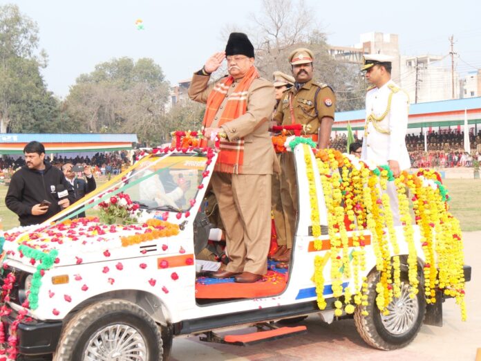 झांसी। राष्ट्र की वीरता, शौर्य एवं गौरव की प्रतीक तथा इतिहास में अमिट हस्ताक्षर करने वाली वीरांगना महारानी लक्ष्मीबाई की पावन भूमि पर स्थित पुलिस लाइन, झाँसी में भारत के लोकतंत्र की अजेयता तथा देश की एकता एवं अखंडता को समर्पित राष्ट्रीय पर्व गणतंत्र दिवस की 77वीं वर्षगाँठ अत्यंत गरिमामय, भव्य एवं उत्साहपूर्ण वातावरण में मनाई गई।