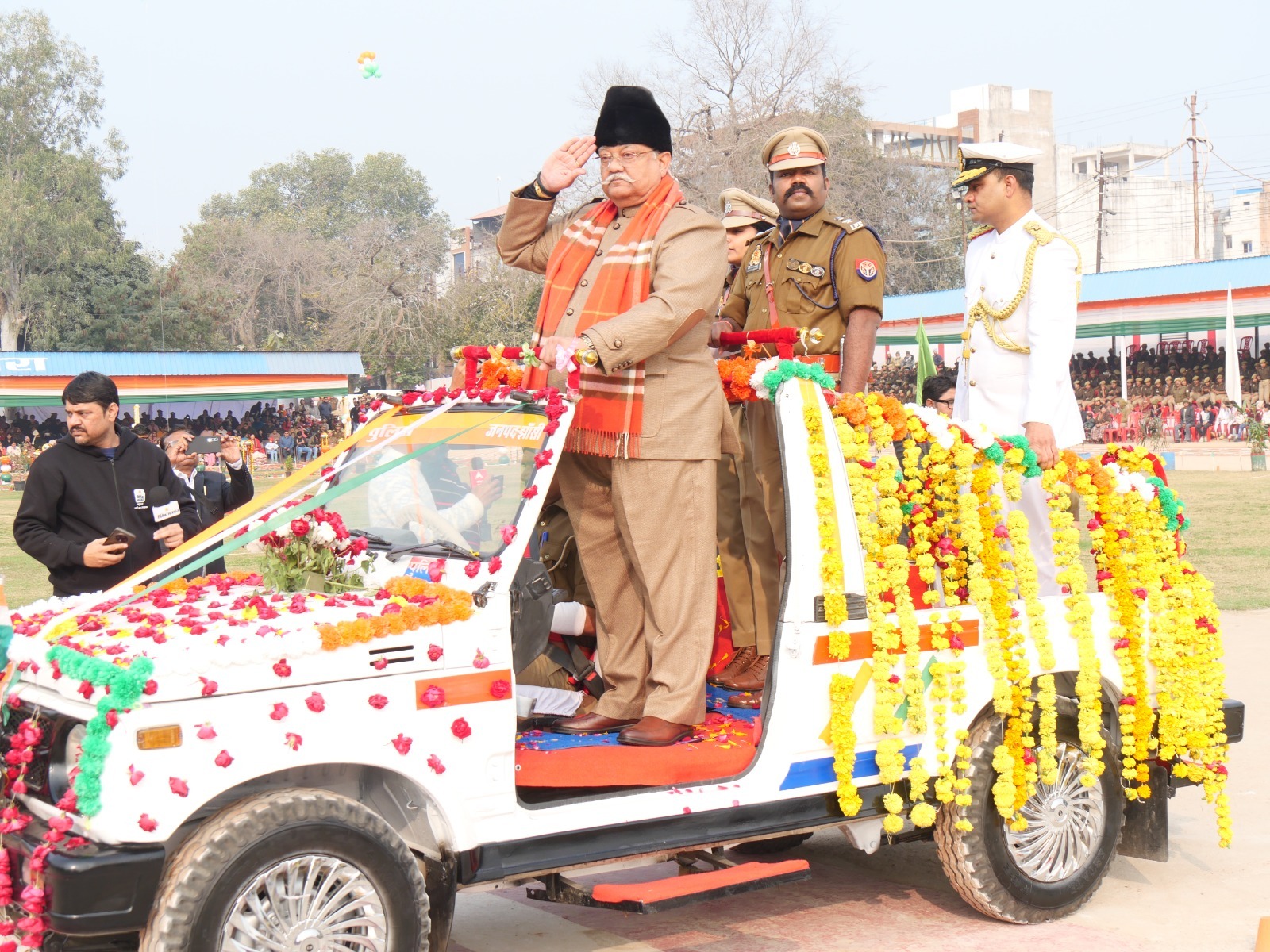 कार्यक्रम के मुख्य अतिथि सभापति, विधान परिषद उत्तर प्रदेश कुंवर मानवेन्द्र प्रताप सिंह द्वारा ध्वजारोहण किया गया। तत्पश्चात पारंपरिक वेशभूषा से सुसज्जित 10 टोलियों की महिला पुलिसकर्मियों द्वारा राष्ट्रीय ध्वज को सलामी दी गई। मुख्य अतिथि द्वारा परेड का निरीक्षण किया गया, जिसके उपरांत परेड द्वारा लयबद्ध हर्ष फायर किया गया।