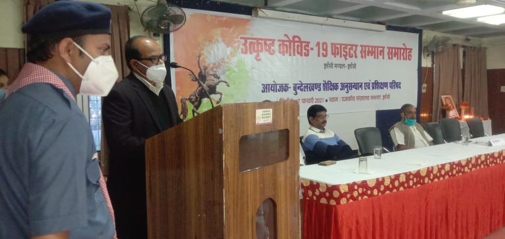 झांसी । बुंदेलखंड शैक्षिक अनुसंधान एवं प्रशिक्षण परिषद के तत्वावधान में राजकीय संग्रहालय में कोविड-19 महामारी के दौरान परोपकारी कार्य करने वाले समाज के विभिन्न क्षेत्रों से जुड़े कार्यकर्ताओं को सम्मानित कर एक नई इबारत लिख कर समाज में एक नई दिशा एवं दशा दिखाकर समाजसेवियों ने नया मूर्त रूप दिया गया ।