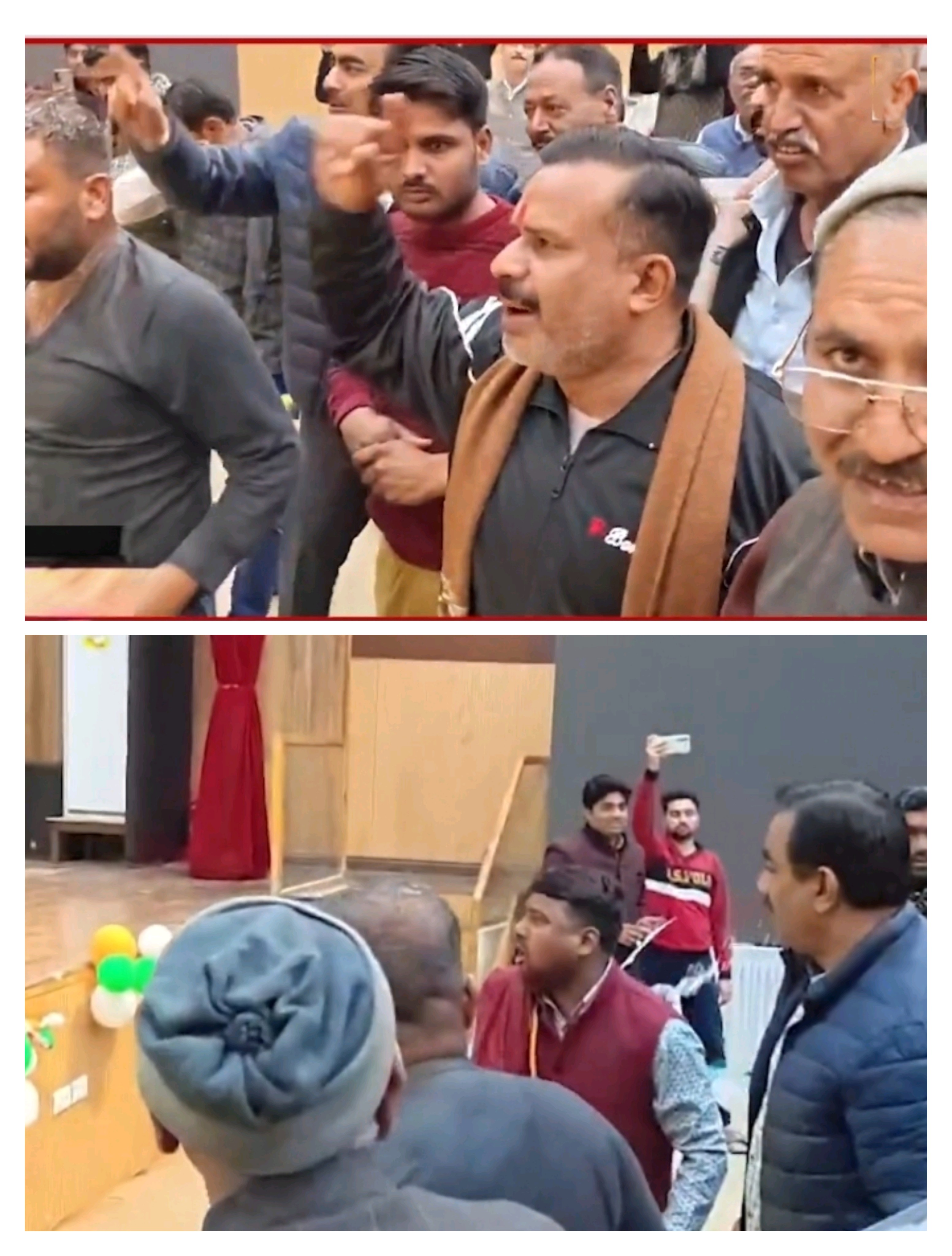इस दौरान उस समय अफरातफरी मच गई जब कुछ किसान पहले से अपने साथ बोतल में लेकर आए ज्वलनशील पदार्थ को अपने ऊपर डाल लिया। वहां पर मौजूद सुरक्षाकर्मियों ने किसी तरह लोगों को शांत कराया और तीन किसानों को समय रहते रोका। इस स्थिति से सभागार में हंगामा हो गया।