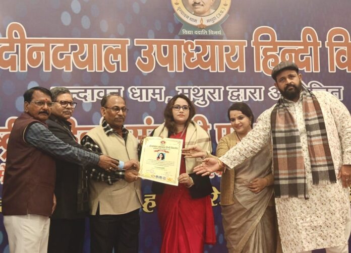 झांसी। बुनियादी शिक्षा और नारी सशक्तिकरण के क्षेत्र में अग्रणी भूमिका निभाने वाली महिला शिक्षक संघ की प्रदेश उत्तर की अध्यक्ष सुलोचना मौर्य को देश की सर्वोच्च प्रतिष्ठित संस्थान पंडित दीनदयाल उपाध्याय हिंदी विद्यापीठ विश्वविद्यालय द्वारा डॉक्टरेट की मानद उपाधि से सम्मानित किया गया।