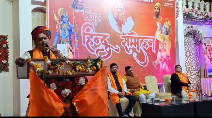 झांसी। राष्ट्रीय स्वयंसेवक संघ के शताब्दी वर्ष के उपलक्ष्य में सोमवार को दीनदयाल नगर की अग्रसेन बस्ती में विराट हिन्दू सम्मेलन आयोजित किया गया। कार्यक्रम के मुख्य वक्ता संघ के क्षेत्र प्रचार प्रमुख सुभाष जी ने हिंदुओं को परिभाषित करते हुए कहा कि सनातन संस्कृति को बचाने के लिए सकल हिन्दू समाज को मिया-बीबी,वाइफ-हसबेंड व हब्बी और बब्बी की संस्कृति से बाहर निकल कर आना होगा। वही मुख्य अतिथि पंडोखर सरकार के पीठाधीश्वर गुरुशरण महाराज ने मातृ शक्ति को अपनी बेटियों को सहेलियां बनाने की अपील की ताकि वे लव जिहाद का शिकार न हों।
