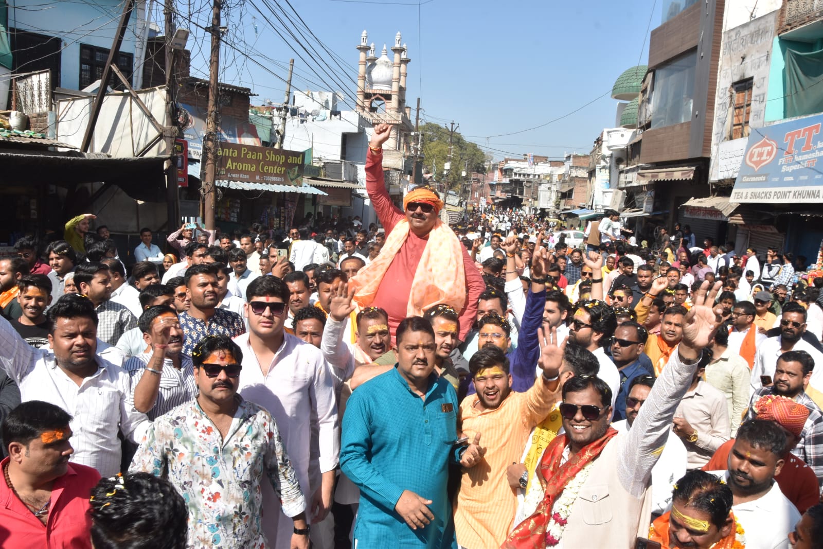 मानिकचौक व्यापार मंडल, विश्व हिन्दू परिषद के सदस्यों, अम्मा जी की धर्मशाला पर गणेश बिजली भंडार, रानी महल पर जय बुन्देलखण्ड व्यापार मंडल, उ0प्र0 थोक व्यापार मंडल के प्रदीप त्रिपाठी, जीतू सोनी, कंचन आहूजा, श्रीमती रजनी गुप्ता, मिनर्वा के पास दददा् ग्रुप समाज सेवी संस्था के सदस्यां ने, राहुल कुर्ली, महिला व्यापार मंडल, झोकनबाग व्यापार मंडल, पचौरी मंदिर पर विनीत पचौरी, कर्मयोगी संस्था के अध्यक्ष संतोष गौड़, सैंयर गेट व्यापार मंडल सदस्यों, संतोषी माता मंदिर के पुजारी, सैंयर गेट के पास मुस्लिम समाज ने फूलों की वर्षा कर अद्भुत स्वागत किया गया।