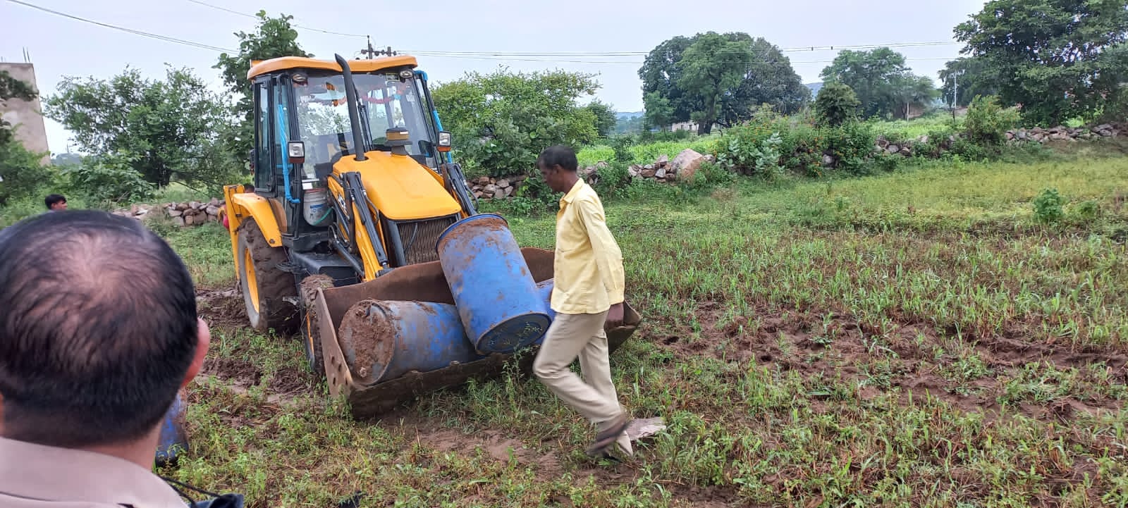 आबकारी व पुलिस की संयुक्त कार्यवाही में भूमिगत ड्रमों को जेसीबी से निकाला, 4 हजार लिटर लहन किया नष्ट