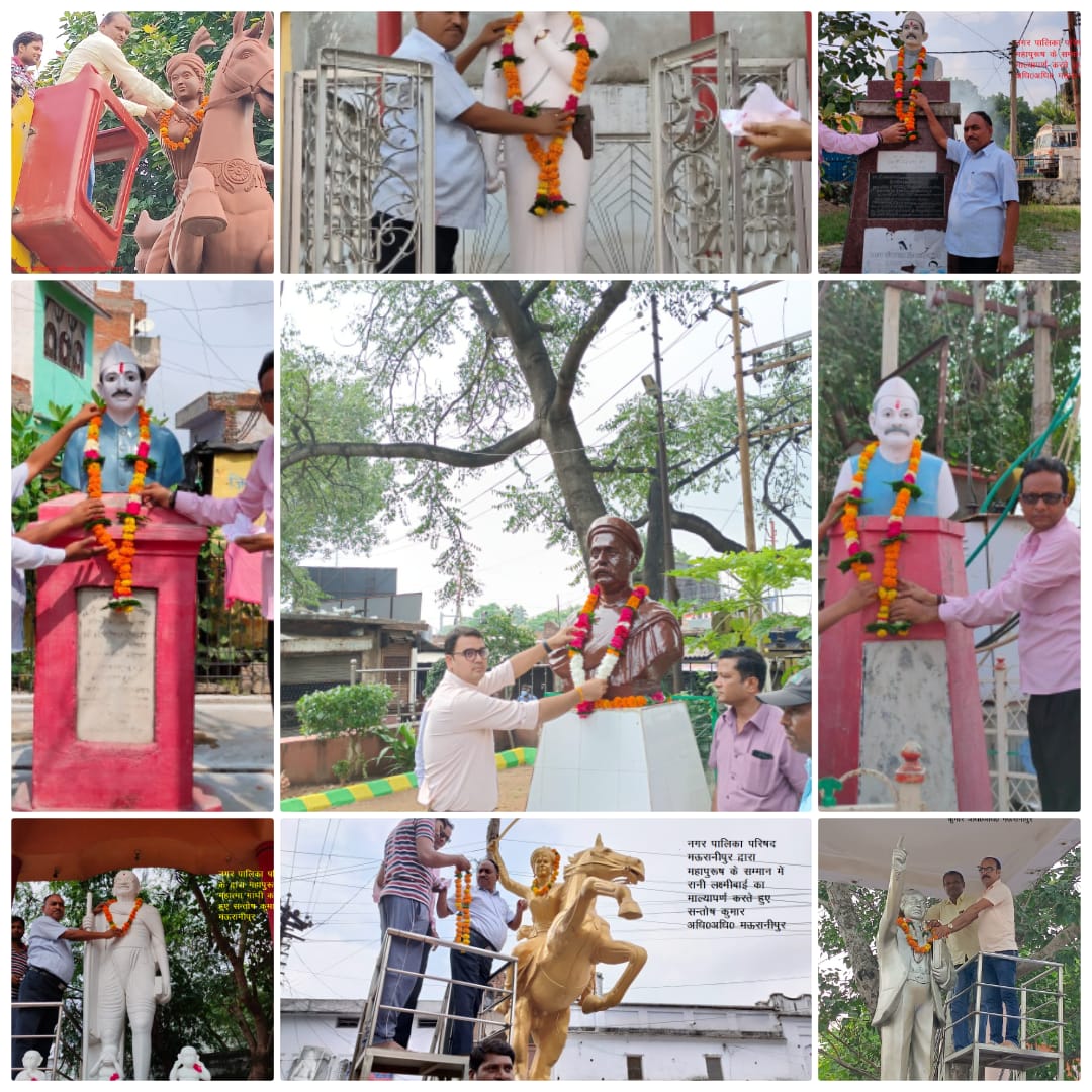 झांसी। पूरे झांसी मण्डल के नगरीय क्षेत्र में रहने वाले निवासियों के लिये आश्चर्य भरी शुक्रवार की सुबह आयी। हर चौराहे पर महापुरूषों/वीरांगनाओं की मूतिर्यों के आस-पास बड़े भाव के साथ सफाई चल रही थी। मूतिर्यों की गरिमामय ढंग से साफ-सफाई की गई। यदि कहीं टूट-फूट थी तो उसकी मरम्मत की गई, रंग-रोंगन किया गया, चूने का छिड़काव देखने को मिला और 10 बजे तक हर महापुरूषों/वीरांगनाओं की मूतिर्यों के गले में सम्मान का प्रतीक माला भी पड़ी हुई मिली। हालांकि न तो किसी महापुरूषों/वीरांगनाओं का जन्म दिवस था और न ही उनका परिनिवार्ण दिवस। फिर भी श्रृद्धा के साथ माल्यापर्ण नागरिकों में आश्चयर् एवं कौतूहल का विषय बना रहा। महात्मा गांधी, बाबा साहब भीमराव अम्बेडकर, सुभाष चन्द्र बोस, महारानी लक्ष्मीबाई, सरदार पटेल सहित लगभग 101 मूतिर्यों पर जहाँ-जहाँ माल्यापर्ण हुआ लोग यह जानने की कोशिश करने लगे कि क्या आज उन महापुरूषों/वीरांगनाओं का कोई महत्वपूर्ण दिन है।
