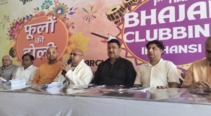 4 मार्च 2026 को झांसी में पहली बार मुक्ताकाशी मंच पर “फूलों की होली एवं भजन क्लबिंग” का भव्य आयोजन किया जाएगा। इस विशेष आयोजन में वृंदावन एवं दिल्ली से पधारे प्रसिद्ध भजन कलाकार सुमित, गोलकनाथ तथा अंतरराष्ट्रीय भक्ति कलाकार अनुपम एवं रूस से पधारी करीना अपनी भक्तिमयी प्रस्तुतियों से श्रद्धालुओं को भाव-विभोर करेंगे। भजन संकीर्तन के साथ पुष्पों की होली का दिव्य एवं आकर्षक आयोजन झांसी में पहली बार आयोजित किया जा रहा है, जो भक्तों के लिए अद्वितीय आध्यात्मिक अनुभव होगा।