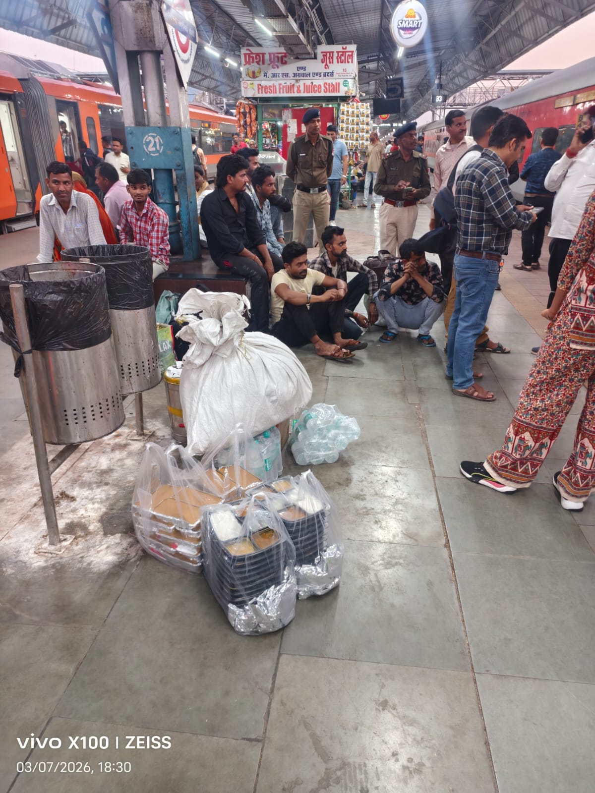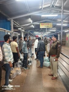 गाड़ी स्टेशन पर लगभग 18:30 बजे आई संयुक्त टीम द्वारा की गई जांच के दौरान 06 अनाधिकृत वेंडर खाने- पीने की सामग्री लिए पाए गए।