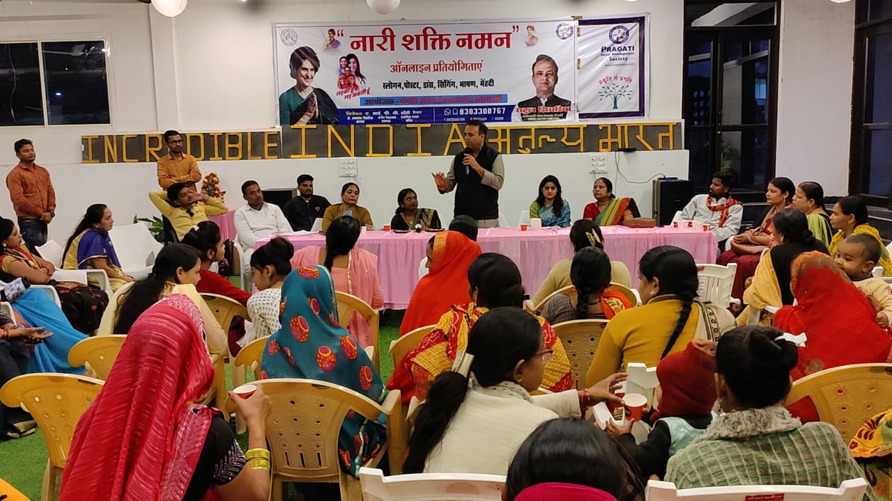 मुख्य अतिथि उ0प्र0 कांग्रेस कमेटी के महासचिव राहुल रिछारिया ने सभी महिलाओं को कांग्रेस के प्रतिज्ञा पत्र की जानकारी दी। उन्होंने कहा कि यदि उत्तर प्रदेश में कांग्रेस की सरकार बनती है तो इसके साथ एक स्वर्णित इतिहास भी बनेगा जिसके तहत भारतीय राजनीति एवं सेवा क्षेत्र में महिलाओं को 40 प्रतिशत की भागेदारी सुनिश्चित होगी। छात्राओं की सुरक्षा को देखते हुए इलैक्ट्रिक स्कूटी एवं स्मार्टफोन, महंगी रसोई के लिए साल में 3 मुफ्त सिलैण्डर इत्यादि कुछ ऐसे संकल्प हैं जिन्हें प्रियंका जी ने मीलों की यात्रा कर समाज के हर वर्ग के साथ समय व्यतीत कर अथक परिश्रम से जमीनी स्तर पर तैयार किया है। इसके अलावा उनका निर्देश है कि क्षेत्र की महिलाओं से मिलकर उनकी समस्याआंे एवं सुझावों को लिखित रूप में संग्रहित किया जाए। जिनके आधार पर महिलाओं के लिए कांग्रेस का संकल्प और अधिक प्रभावी हो सके।