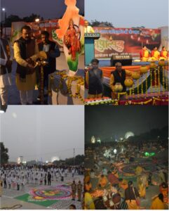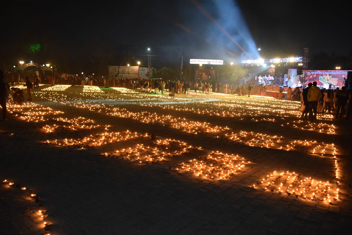 सर्व प्रथम गायत्री परिवार के द्वारा स्वस्तिवाचन व गायत्री मंत्र के साथ दीप यज्ञ का आयोजन किया गया। उसके बाद मां भारती के सामने दीप प्रज्वलित करते हुए कार्यक्रम का शुभारंभ किया गया उसके बाद सीडीएस बिपिन रावत समेत स्वतंत्रता के लिए अपना बलिदान देने वाले सभी बलिदानों को याद करते हुए 75000 दीपों का प्रज्ज्वलन किया गया।