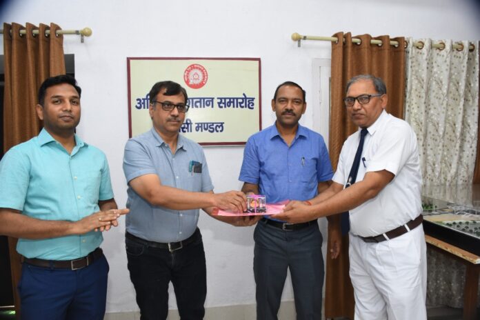 झांसी। उत्तर मध्य रेल, झाँसी मंडल से 38 रेल कर्मचारी सेवा निवृत्त हुये समस्त सेवानिवृत्त कर्मचारियों को रू 10,55,67,763/- का भुगतान एनईएफटी के माध्यम से किया गया। समस्त उपस्थित कर्मचारियों को भुगतान विवरण सेवा प्रमाण पत्र पीपीओ एवं स्वर्ण जड़ित पदक श्री विवेक मिश्रा, अपर मंडल रेल प्रबंधक(इंफ्रा) झॉसी द्वारा प्रदान किये गये। समारोह में वरिष्ठ मण्डल कार्मिक अधिकारी राजेश कुमार गुप्ता, वरिष्ठ मण्डल वित्त प्रबन्धक अमृतॉशु मौर्य व मण्डल कार्मिक अधिकारी जी.पी मिश्रा, सहायक कार्मिक अधिकारी शैलेन्द्र श्रीवास्तव आदि उपस्थित रहे। अन्त में राजेश कुमार गुप्ता, वरिष्ठ मंडल कार्मिक अधिकारी, उत्तर मध्य रेल, झॉसी ने आभार व्यक्त किया।