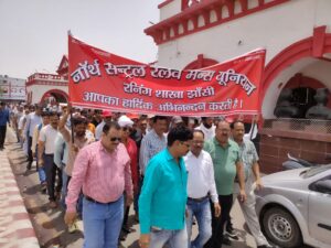 Jhansi । ऑल इंडिया रेलवे मेंस फेडरेशन के आव्हान पर नॉर्थ सेंटर रेलवे मेंस यूनियन झांसी मंडल ने कामरेड वीएस कंसाना के नेतृत्व में झांसी मंडल में धरना प्रदर्शन तथा रैली का आयोजन किया गया।
