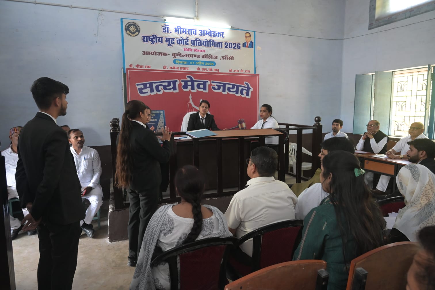 झांसी। बुंदेलखंड कॉलेज में डॉ0 भीमराव अम्बेडकर राष्ट्रीय मूट कोर्ट प्रतियोगिता का उद्घाटन किया गया। कार्यक्रम में मुख्य अतिथि के रूप में योगेश चंद दुबे (कुलगुरू, पी.के. यूनिवर्सिटी) तथा विशिष्ट अतिथि के रूप में वरिष्ठ अधिवक्ता राकेश भटनागर उपस्थित रहे। कार्यक्रम को संबोधित करते हुए अतिथियों ने विधि शिक्षा में मूट कोर्ट की महत्ता पर प्रकाश डाला और छात्रों को व्यावहारिक ज्ञान प्राप्त करने के लिए प्रेरित किया।