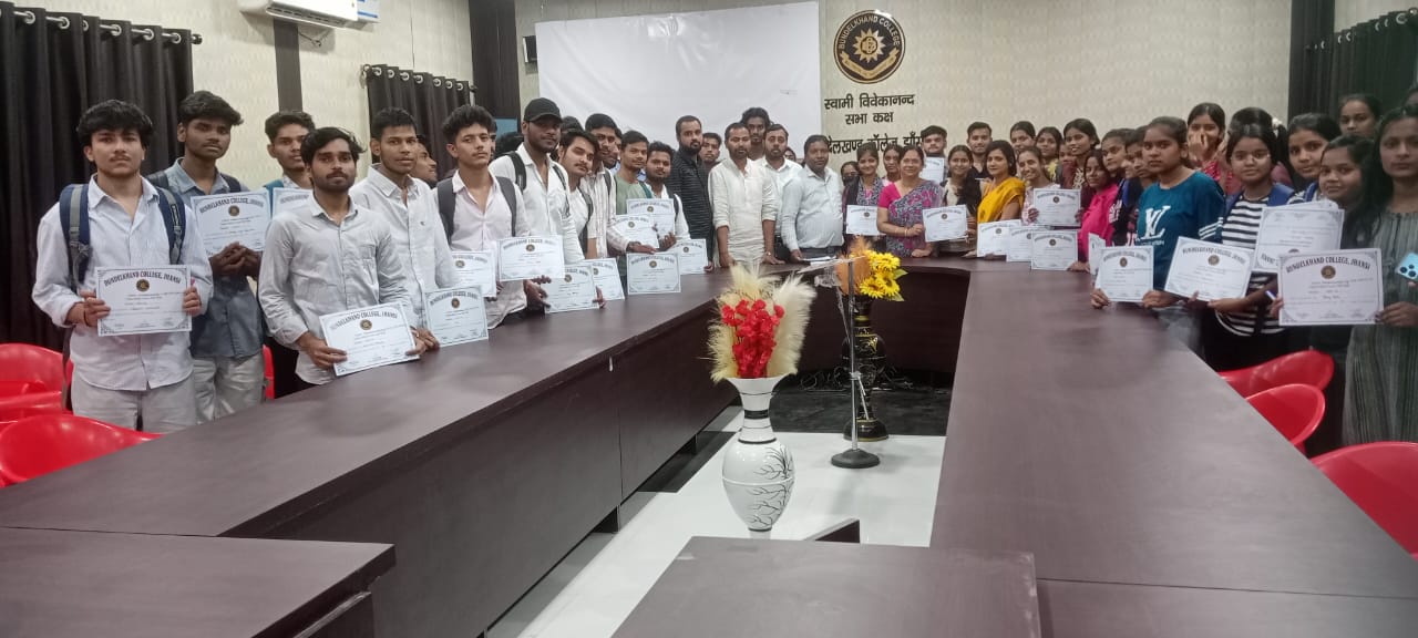 झांसी। 09 अप्रैल को बुंदेलखंड कॉलेज में स्नातक (UG) एवं स्नातकोत्तर (PG) विद्यार्थियों के लिए आयोजित वैल्यू एडेड कोर्स “Entrepreneurship and Soft Skills (BKDVAC-03)” का सफलतापूर्वक समापन किया गया। इस अवसर पर कोर्स को सफलतापूर्वक पूर्ण करने वाले सभी विद्यार्थियों को प्रमाण-पत्र वितरित किए गए।