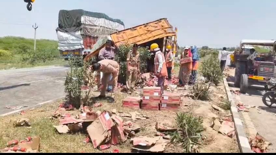 बीयर कंटेनर व मिर्ची से लदे ट्रक की जोरदार भिड़ंत, चालक घायल