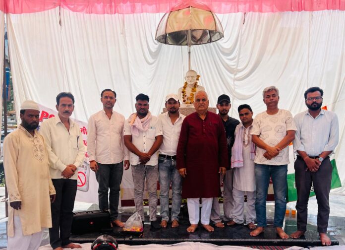 झांसी। भारतीय युवा कांग्रेस के तत्वावधान में गांधी उधान कचहरी चौराहा पर केंद्र सरकार की किसान व युवा विरोधी नीति के खिलाफ चल रहे 7 दिवसीय ‘किसान न्याय सत्याग्रह ‘ के तीसरे दिन पी सी सी सदस्य राजेन्द्र सिंह यादव के मुख्य आतिथ्य एवं शहर अध्यक्ष मो. आसिफ की अध्यक्षता में कांग्रेसजन सत्य्ग्रग्रह पर बैठे ।