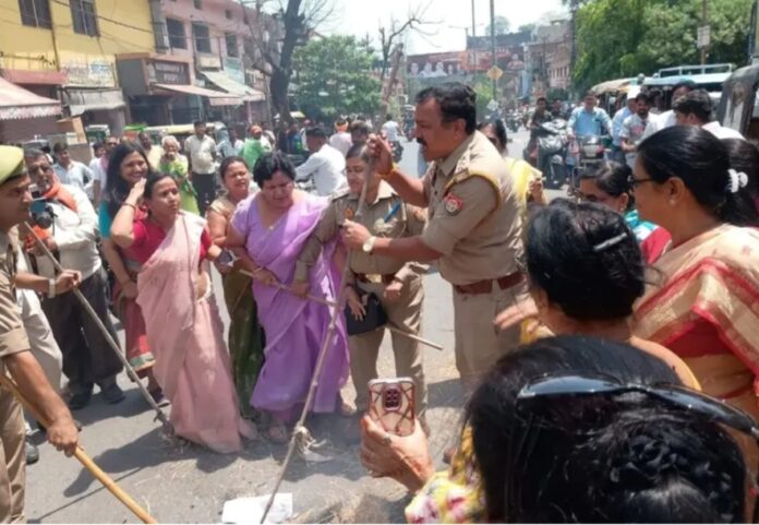 इस दौरान पुलिस और महिला प्रदर्शनकारियों के बीच काफी देर तक खींचतान चली, जिससे अफरा-तफरी का माहौल बन गया। बावजूद इसके, महिला प्रदर्शनकारियों ने पुतले को आग के हवाले कर दिया।