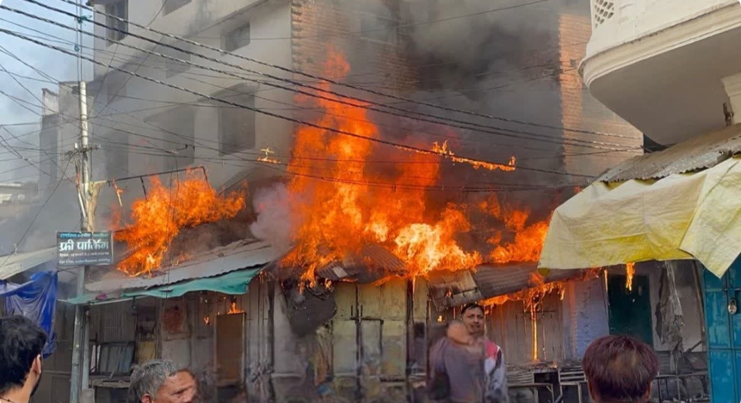 मऊरानीपुर कोतवाली क्षेत्र के दमेले इंटर कॉलेज के पास अचानक आग लगने से अफरातफरी मच गयी और देखते ही देखते आग ने विकराल रूप ले लिया और एक के बाद एक कुल आठ दुकानें आग की लपटों की चपेट में आ गई और दुकानों में रखा लाखों रुपये का सामान जल कर खाक हो गया।