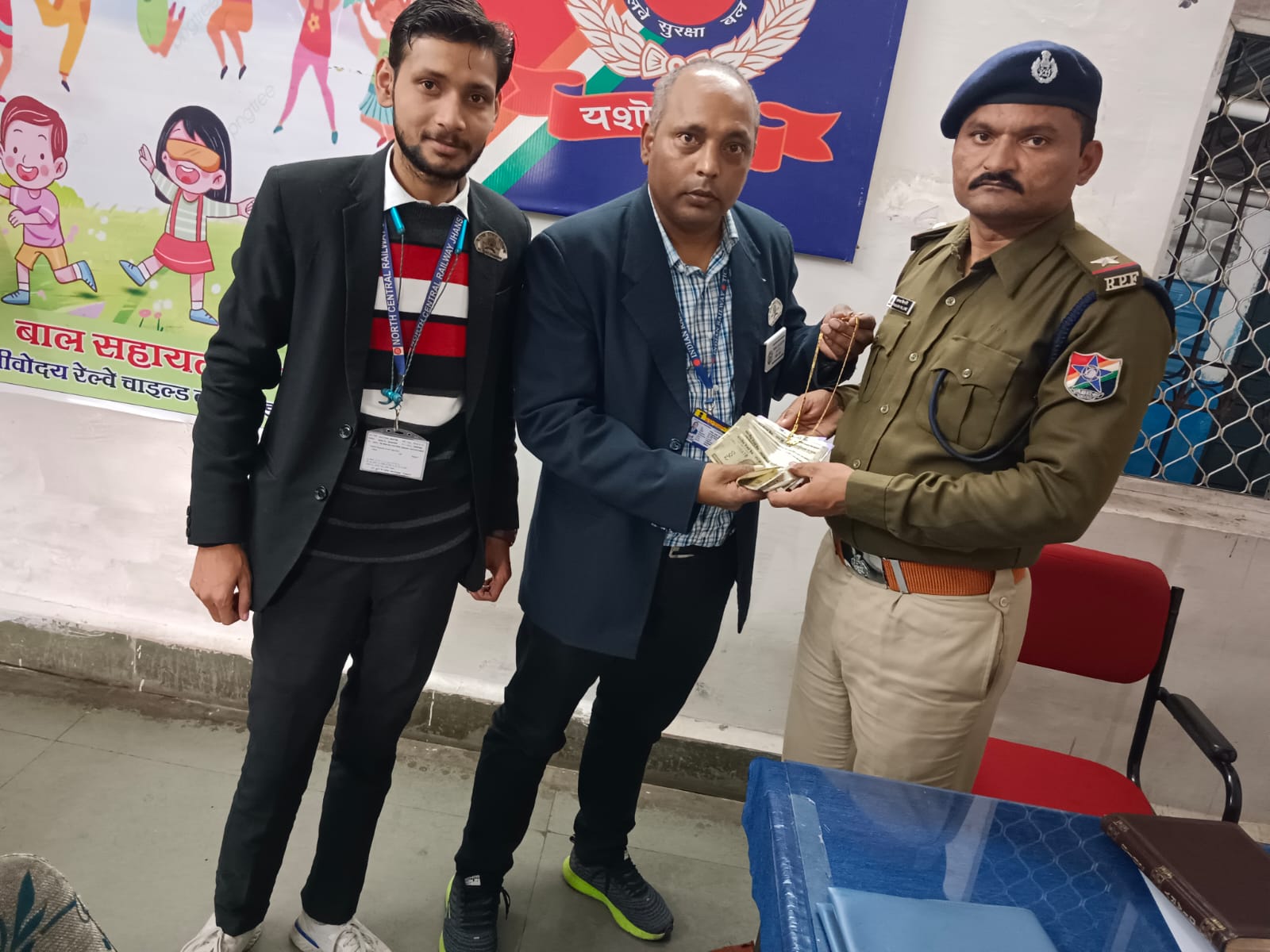 झांसी। 14 दिसम्बर को 12616 जी टी एक्सप्रेस में वीरांगना लक्ष्मीबाई झाँसी स्टेशन से इटारसी ड्यूटी के दौरान कोच B2 में कार्यरत झाँसी के TTE लव शर्मा को एक पर्स पड़ा हुआ मिला। रात्रि का समय होने के कारण जाग रहे यात्रियों से TTE ने मिले पर्स के मालिक खोजने का प्रयास किया परंतु सफलता नहीं मिल सकी। इस पर TTE द्वारा अपने ट्रेन कैप्टेन मनोज गुप्ता व वरिष्ठ अधिकारियों को जानकारी दे कर अपनी ड्यूटी समाप्त होने पर इटारसी पहुंच कर पर्स को RPF को सौंप दिया।पर्स में 14900 रुपये व एक ढाई तोले की सोने की चेन थी।