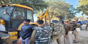 झांसी। गुरुवार को एनजीटी (राष्ट्रीय हरित प्राधिकरण) के आदेश पर नारायण बाग के पास डडियापुरा में कथित अतिक्रमण रूपी धार्मिक स्थलों को हटाने पहुंचे निगम के अतिक्रमण विरोधी दस्ते को उत्तेजित भीड़ ने घेर लिया और जब बुलडोजर आगे बढ़ा तो प्रदर्शनकारी इसके आगे लेट गए और हंगामा शुरू कर दिया। प्रदर्शनकारियों का कहना था कि धार्मिक स्थल बहुत पुराना है लिहाजा यहां कार्रवाई नहीं होने देंगे। भारी विरोध को देख निगम का दस्ता एक सप्ताह का समय देकर बगैर कार्रवाई किए ही वापस लौट आया।