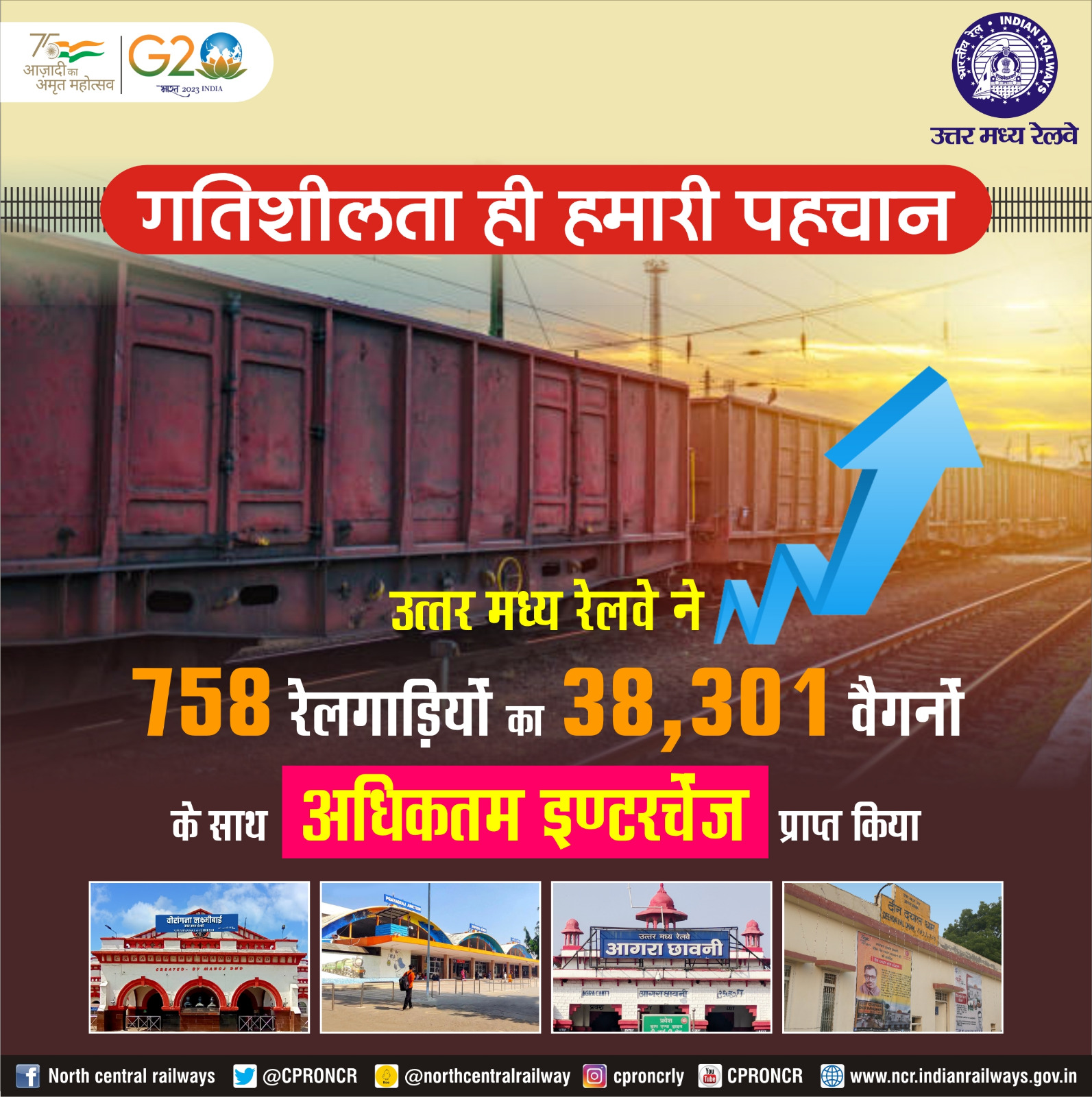 उत्तर मध्य रेलवे ने हासिल किया अब तक का सर्वश्रेष्ठ इंटरचेंज