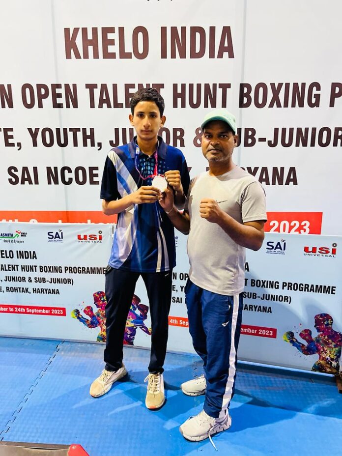झाँसी। हरियाणा के रोहतक में 14 से 24 सितंबर तक आयोजित खेलो इंडिया टैलेंट हंट सब जूनियर और जूनियर बालक व बालिका नेशनल बॉक्सिंग चैंपियनशिप में मेजर ध्यानचंद स्पोर्ट्स स्टेडियम झांसी के बॉक्सिंग छात्रावास में प्रशिक्षण प्राप्त कर रहे लव शर्मा ने 43 किलो ग्राम भार वर्ग में उत्तर प्रदेश का प्रतिनिधित्व करते हुए रजत पदक जीता। आज हुए फाइनल मुकाबले में लव उत्तराखंड के मुक्केबाज से कड़े मुकाबले में हार गए और उन्हें सिल्वर मेडल से संतोष करना पड़ा ।