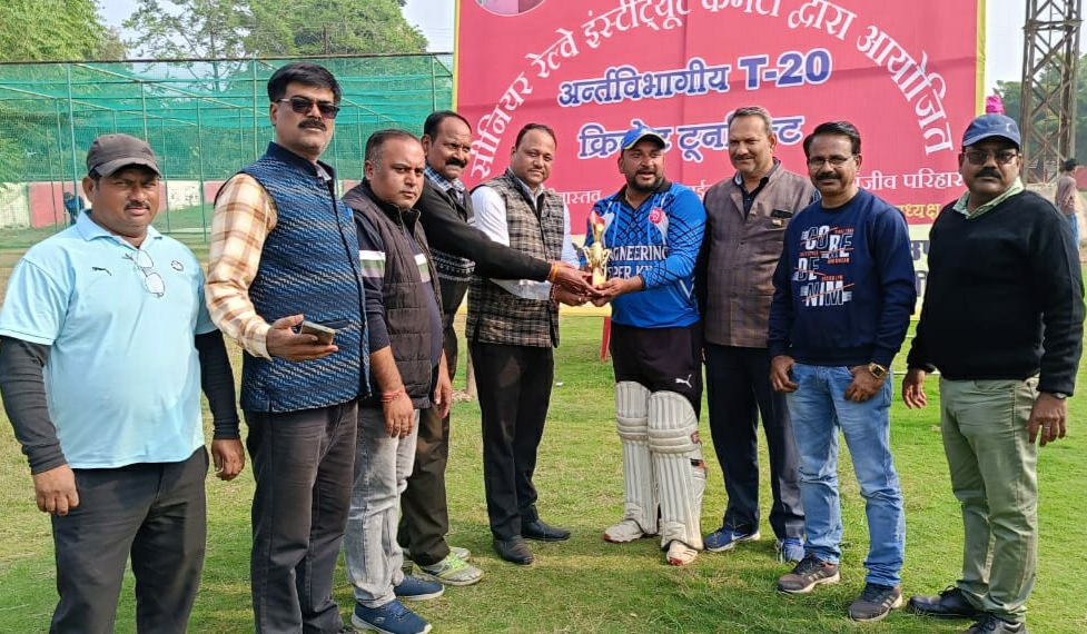 शनिवार को सीनियर रेलवे इंस्टिट्यूट कमेटी के तत्वाधान में आयोजित T20 क्रिकेट टूर्नामेंट में आज पहला सेमीफाइनल मैच इंजीनियरिंग टीम और आर.पी.एफ टीम के बीच खेला गया। सीनियर रेलवे इंस्टिट्यूट सचिव मुकेश कुमार श्रीवास्तव ने खिलाड़ियों से परिचय प्राप्त किया तथा टॉस कराकर मैच का शुभारम्भ किया।