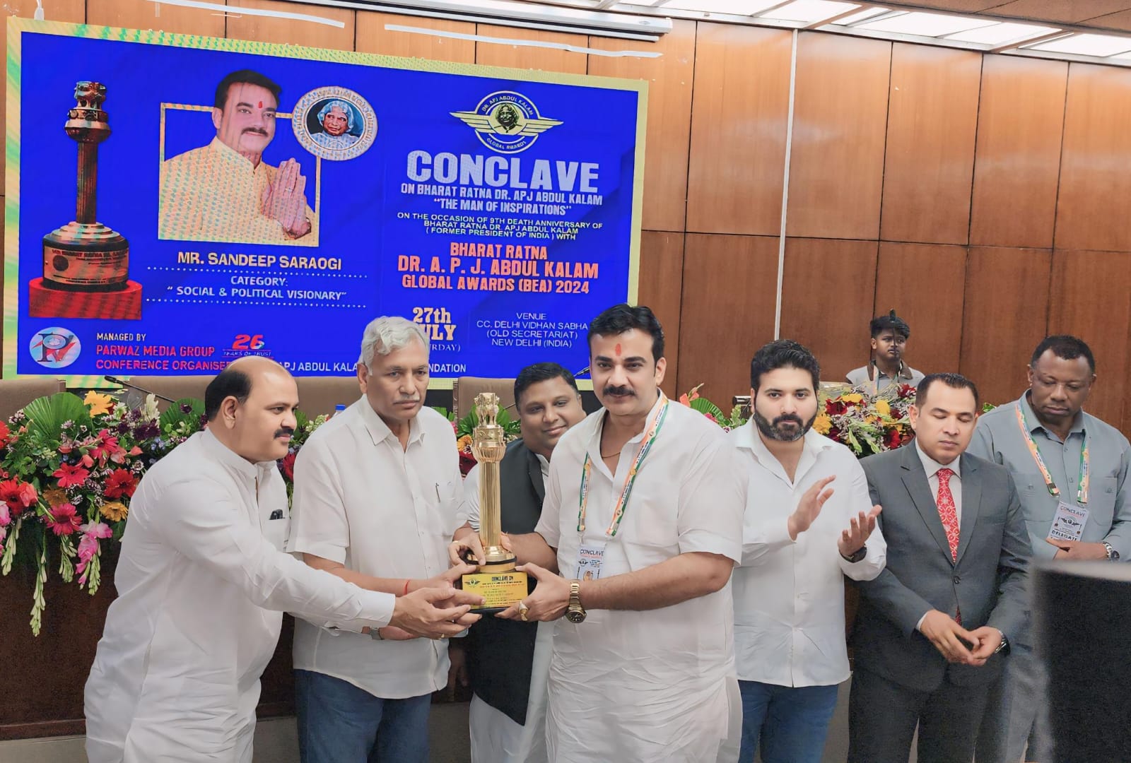 झांसी। दिल्ली विधानसभा के सभागार में भारत रत्न डॉ० एपीजे अब्दुल कलाम ग्लोबल अवॉर्ड फाउंडेशन कॉन्क्लेव का सफलतापूर्वक आयोजन किया गया। यह आयोजन प्रत्येक वर्ष डॉ० अब्दुल कलाम की पुण्यतिथि के अवसर पर आयोजित किया जाता है। यह कार्यक्रम प्रत्येक वर्ष विभिन्न क्षेत्रों में उत्कृष्ट कार्य करने वाले व्यक्तियों को सम्मानित करने का एक अंतर्राष्ट्रीय मंच है। इस कार्यक्रम में अतिथि के रूप में देश-विदेश से कई हस्तियां सम्मिलित होती हैं साथ ही अप्रवासी भारतीयों को भी सम्मानित किया जाता है जो अन्य देशों में रहकर आर्थिक, सामाजिक या किसी अन्य रूप से भारत का नाम रोशन कर रहे हैं।