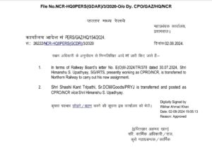 प्रयागराज । शशिकांत त्रिपाठी उत्तर मध्य रेलवे के नए मुख्य जनसंपर्क अधिकारी नियुक्त किए गए है। श्री त्रिपाठी भारतीय रेलवे ट्रैफिक सर्विस के 2009 बैच के अधिकारी हैं। वर्तमान में वह प्रयागराज मंडल में वरिष्ठ मंडल वाणिज्य प्रबंधक /फ्रेट के पद पर कार्यरत थे। श्री त्रिपाठी इससे पूर्व झांसी मंडल में वरिष्ठ मंडल वाणिज्य प्रबंधक, वरिष्ठ मंडल परिचालन प्रबंधक सहित अन्य महत्वपूर्ण पदों पर अपनी सेवाएं दे चुके हैं।