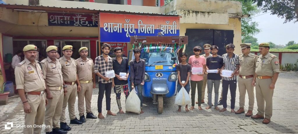 झांसी । जिले के पूंछ थाना पुलिस टीम ने 07 अपराधियों के गैंग को डकैती की योजना बनाते हुए गिरफ्तार कर लिया।