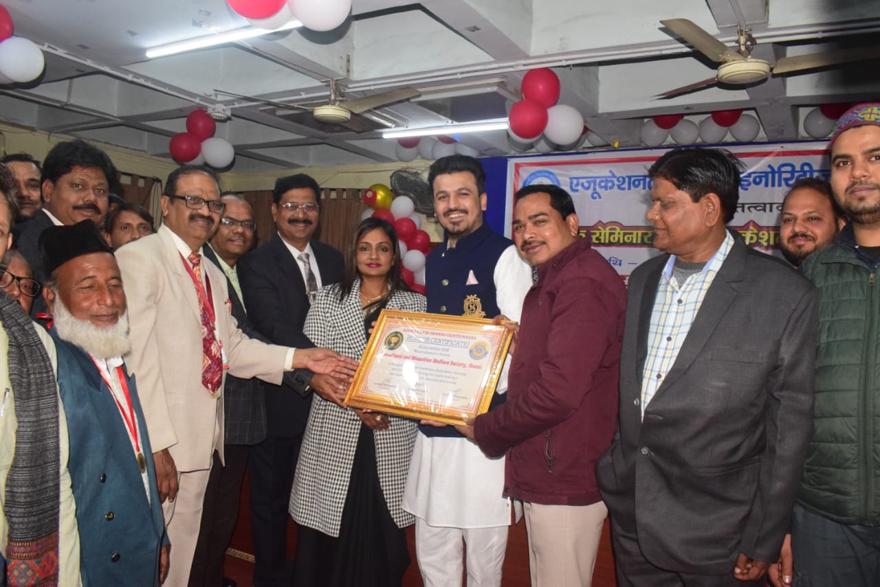 झांसी। एजुकेशनल एंड माइनोरिटीज वेल्फेयर सोसायटी के तत्वाधान में राजकीय संग्रहालय में एजुकेशनल एंड वेलफेयर एवार्ड 2024 कार्यक्रम के तहत शैक्षिक संगोष्ठी एवं मेधावी छात्र -छात्रा अभिनंदन समारोह का आयोजन समाजसेवी नावेद खान के मुख्य आतिथ्य, जिला शासकीय अधिवक्ता (सिविल) प्रणय श्रीवास्तव, सवेरा इंटरनेशनल ग्रुप के समीर खान, वरिष्ठ अधिवक्ता याकूब अहमद मंसूरी, चौधरी नदीम कुरैशी, आफताब आलम, लायन विकास चौरसिया, आसिफ नियाज़ी, नितिन साहू के विशिष्ट आतिथ्य में किया गया l अध्यक्षता नगर निगम की उपसभापति प्रियंका साहू ने की l