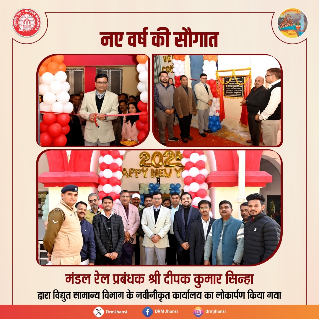 नववर्ष के इस विशेष अवसर पर, मंडल रेल प्रबंधक ने विद्युत सामान्य विभाग के नए रिनोवेटेड ऑफिस का उद्घाटन किया। इस दौरान उन्होंने सभी कर्मचारियों को बेहतर कार्य वातावरण उपलब्ध होने की शुभकामनाएं दीं और अपने कार्यों में नई ऊर्जा और प्रेरणा के साथ योगदान देने का संदेश दिया।