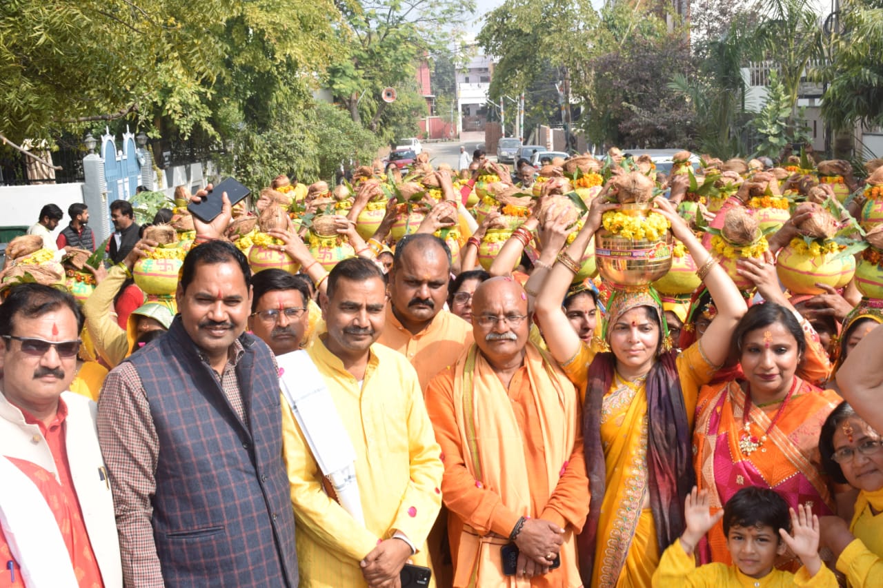 झांसी। बजरंग कॉलोनी में यज्ञ एवं भागवत कथा की शोभायात्रा भक्ति भाव से निकाली गई जिसमें 251 महिलाएं सर पर मंगल कलश रख कर चल रही थी। पूरी बजरंग कॉलोनी में कलश यात्रा बड़ी धूमधाम के साथ घूमी तत्पश्चात यज्ञ में बैठने वाले लोगों का प्रायश्चित कर्म करवाया गया।