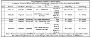 25 जनवरी को महाकुंभ के लिए संचालित की जाने वाली स्पेशल ट्रेनों की सूची ।