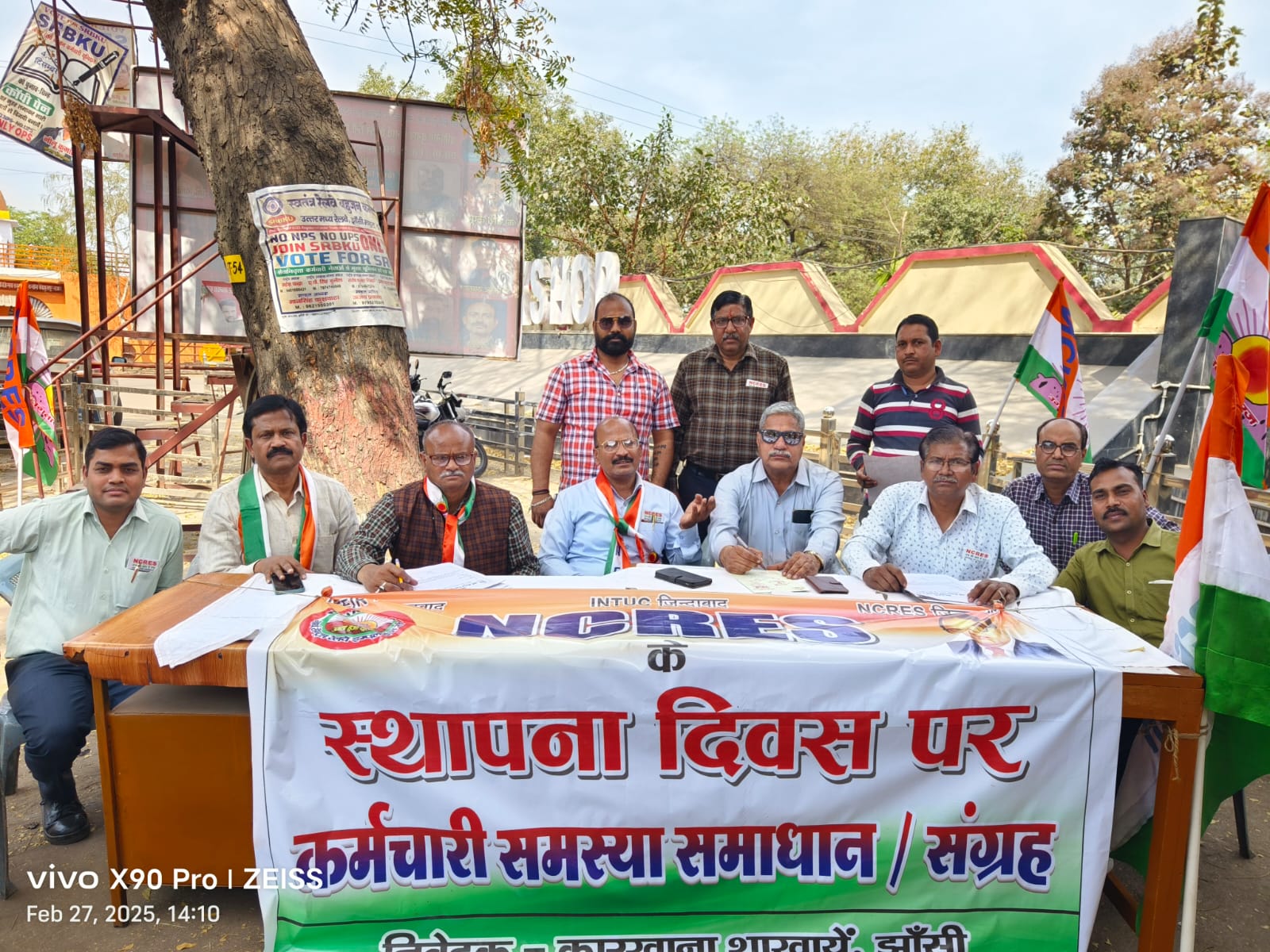 झांसी। NCRES के स्थापना दिवस पर कारखाना मुख्य द्वार पर नॉर्थ सेंटर रेलवे एम्पलाइज संघ कारखाना शाखा 1,2 एवं 3 का संयुक्त कैंप लगाया गया जिसमें कारखाना रेल कर्मचारियों की समस्याओं को सुना गया। कैंप मे लगभग 200 कर्मचारियों में अपनी विभिन्न प्रकार की समस्याएं यूनियन पदाधिकारियो को लिखित में दर्ज कराई गई। यूनियन द्वारा सभी समस्याओं को अति शीघ्र नियमानुसार हल कराया जाएगा ।