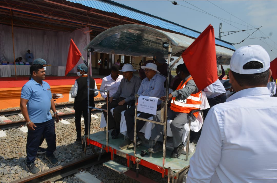 रेल संरक्षा आयुक्त श्री सक्सेना द्वारा मंडल एवं निर्माण संगठन के अधिकारियों के साथ मोटर ट्राली के माध्यम से दोनों स्टेशनों के मध्य नव निर्मित ब्रॉड गेज लाइन का सघन निरीक्षण किया। निरीक्षण के दौरान उक्त रेल खंड के अंतर्गत आने वाले ट्रैक्शन, सिग्नल, ट्रैक, ट्रैक-पॉइंट्स आदि सभी इंस्टालेशन तथा उनकी कार्य क्षमता का गहनता से निरीक्षण किया गया I गेट्स, स्विचिंग पॉइंट्स, पॉइंट्स, सिग्नल सहित सभी संस्थापनों को आवश्यकतानुसार संचालित करते हुए परख की गयी |