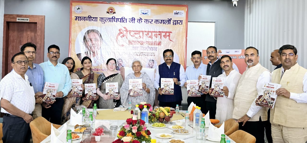 झांसी। 29 मार्च को कुलाधिपति एवं राज्यपाल आनंदी बेन पटेल के द्वारा झॉंसी अल्प प्रवास के दौरान बुन्देल खंड विश्व विद्यालय की पुस्तक “श्रेष्ठायनम्” का विमोचन किया गया।